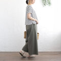 ウエストは総ゴム仕様で、締めつけ感がなく、リラックスした着心地。