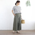 季節の移り変わりに頼れる、理想のパンツ。東炊きコットンリネンのワイドパンツ(カーキ)PT11