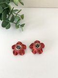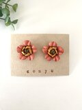 お花の形にカットした革を一枚一枚染めて作った温かみのあるピアスです。