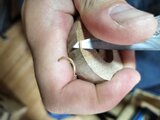 桜もウォルナットも固い木材です。小刀で彫り込んでいくのは手のかかる作業です。