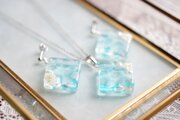 レジンアート スクエアペンダント〈水紋・ブルー〉