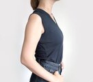 ヨレヨレとなり難く、また袖ぐりのフィット感もアップしますので、よりスッキリと上品に着こなせるノースリーブTシャツです。