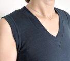 少し深めのVネックは、天巾(衿ぐりの横巾)をなるべく小さくして、衿ぐりがタテ長に見えるようにしていますので、鎖骨から首のラインをとてもきれいに見せてくれます。