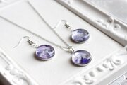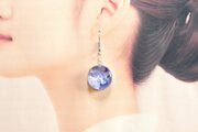 滲んだ二種類の青紫が優雅な雰囲気を漂わせるピアス。