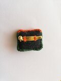 布、糸、綿、油性インク、フェルト、ブローチピン