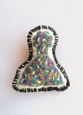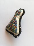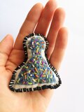 布、糸、綿、油性インク、フェルト、ブローチピン