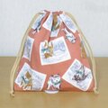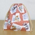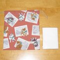 レンガ色地に写真と豆柴が描かれた生地で作りました。