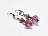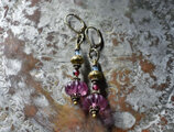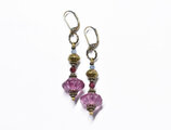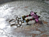 古代紫色japanヴィンテージビーズと蓮華ブラス、アクアマリン、ガーネットのピアス