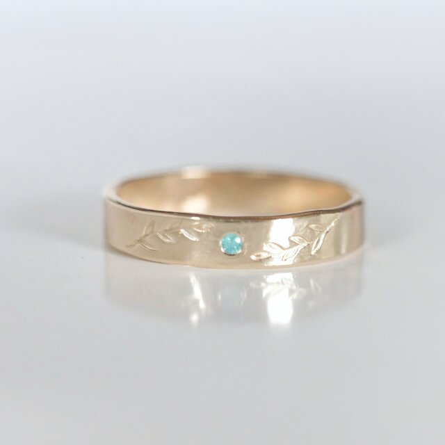 パライバトルマリン オリーブリーフ フラットリング 14kgf ピンキーリング対応 10月誕生石 ご褒美 ギフト