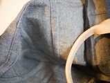 8ozと10ozの厚みのインディゴデニムが混ざっています。持ち手はヌメ革です。