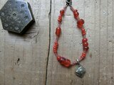 *happy price*古のredブレス。@アジアの民族メタルチャーム+ボヘミアの古いビーズたち+ヴェネチアの古いシードビーズ