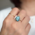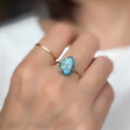 ターコイズとコッパー(銅)を圧縮・張り合わせた天然石、「ブルーコッパーターコイズ」を使用したフリーサイズのリングです。まるで夏の空や海のようなブルーに、ゴールドのような銅の煌めきがアクセントに。