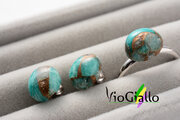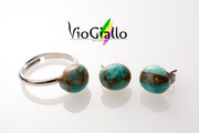 ペルー産のアマゾナイトとコッパー(銅)などの金属を細かく砕き、圧縮して再生成したコンポジットストーンです。