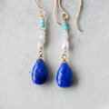 ラピスラズリと原石ダイヤとターコイズのピアス・イヤリング変更可