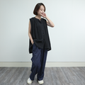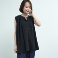 通気性良く肌触りが優しい 楊柳ダブルガーゼ ノースリブ シャツ ブラック 0697BK