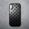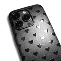 【iPhone16pro/15/14/13/12/12mini/11~】特殊グロス加工レザーケースカバー(ハート×ブラック)