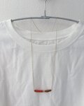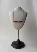 ネックレスとして仕上げたこの作品は赤、ゴールド、茶色の糸で温かみのある1点に仕上げました。夏場はもちろんですが、秋や冬のセーターやスウェット素材の服にもピッタリなネックレスです。