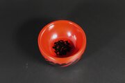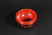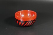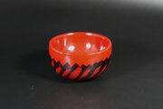 外側 炭粉を蒔いて黒漆を塗り、その上から赤漆を塗って文様を作っています。