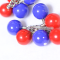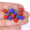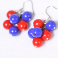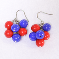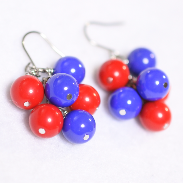 2025大阪万博、ミャクミャクカラーの可愛いチェコビーズ、ガラスビーズを束ねて小さなシャンデリアピアスをお仕立てしました。