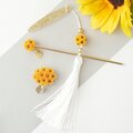 帯飾り 「ひまわり」 タッセル 房 つまみ細工 オレンジ色 根付 和装 着物 浴衣 夏の花 帯周り プレゼント 人気