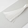 紙に樹脂を染み込ませた鮮やかな色合いで、小ぶりながら存在感たっぷり。動くたびに揺れる真っ白なタッセルが、夏の日にも涼しげに見せてくれます。着物や浴衣姿に夏色のアクセントを加えたい日にぴったりです!