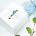 本日無事に届きました。きれいなブルーにみとれます。とても目立つので石の小ささが気になりません。リングのミル打ちも素敵。ツヤツヤのシルバーリングと重ねたら、ブルーが一層引き立つような気がしました。
