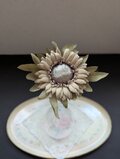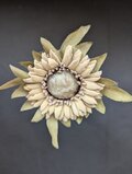 淡い黄色を含んだオイスターホワイト色を染み込ませた ヒマワリブローチです。