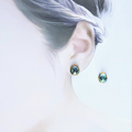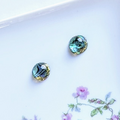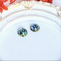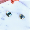 ブルー螺鈿ゴールドラメのカボションピアスイヤリング