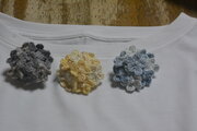 薄い黄色3色の小花を8個パールビーズを縫い止めています