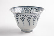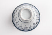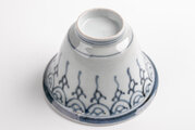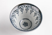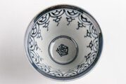 シンプルな瓔珞文様に、見込みに描かれた五弁花が味わい深い絵付けです。