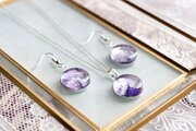 滲んだ二種類の青紫が優雅な雰囲気を漂わせるペンダント。