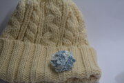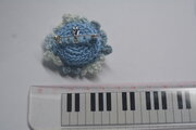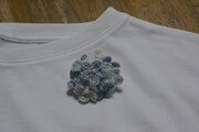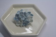 3色の薄いブルーの糸で編み上げた小花を8個 パールビーズを縫い止めています
