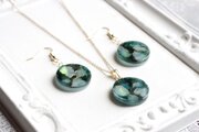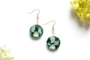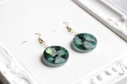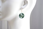 緑と白の二色が織りなす、月面の模様を思わせるデザインが優雅でクラシカルなピアス。