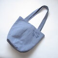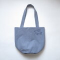 くったりバケツトート 鳥さんの刺繍、グレー(ヴィンテージ加工)