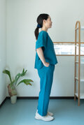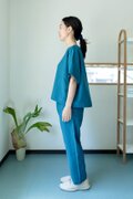 後ろタックはデザイン性と動きやすさを表現しています。身幅がゆったりLサイズの方まで楽に着ていただけます。