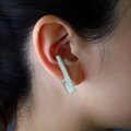 耳への装着部位(先端内側の突起部位)は肌当たりの良い丸い曲面となります。