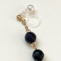 星空みたいな紫金石/ブルーゴールドストーン(ガラス)3粒のリバーシブルノンホールピアス No.C823
