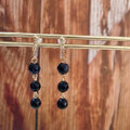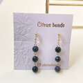 紫金石ともブルーゴールドストーンとも言われるガラス3粒の揺れるイヤリングです。