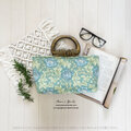 ⭐️ウィリアムモリスのアネモネ グリーン ブルー生地を使用。リネン生地で、おしゃれなシャーリングをつけてみました。アンティーク風でシャビーな木の持ち手を使用しています☆