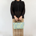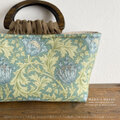 ウィリアムモリス アネモネ グリーン ブルー 緑 花柄 小柄 木の持ち手 トート 手提げ バック
