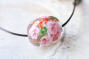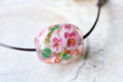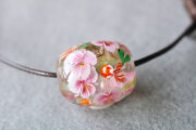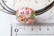 とんぼ玉のサイズは24mm×21mmです。重さは21gです。