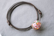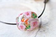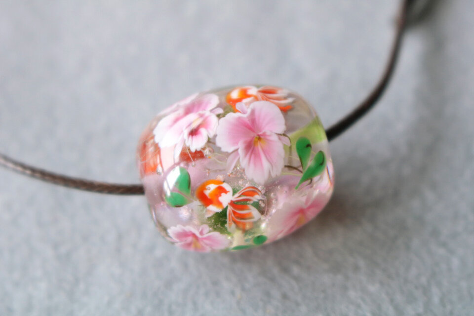 泡を入れた薄いピンク×黄緑の地に、カトレアを咲かせ金魚を泳がせました。