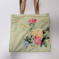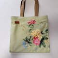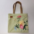 ★インド、本場ブロックプリント(手押し)のトートバッグ★紙袋の横型★若草色★裏地あり★