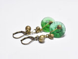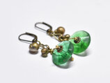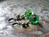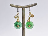 ディスク型アンティークボヘミアビーズと民族鈴のピアス