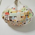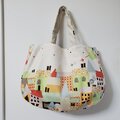 かわいいお家が並ぶ絵本のようなデザインのバッグです。