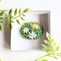 ナチュラルな色合いの小さなブローチは様々なお召し物に合わせやすく使い勝手の良いアクセサリーです。
