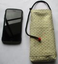 8298 絣柄の紬の着物で作ったスマホポーチ