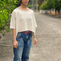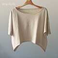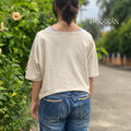 ゆったりドルマンスリーブカットソー 生成りショート丈 通気性の良いコットンヘンプ5分袖Tシャツ 体型カバーシルエット