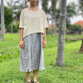 生成りなので柄物のパンツやスカートにも合わせられて重宝します。