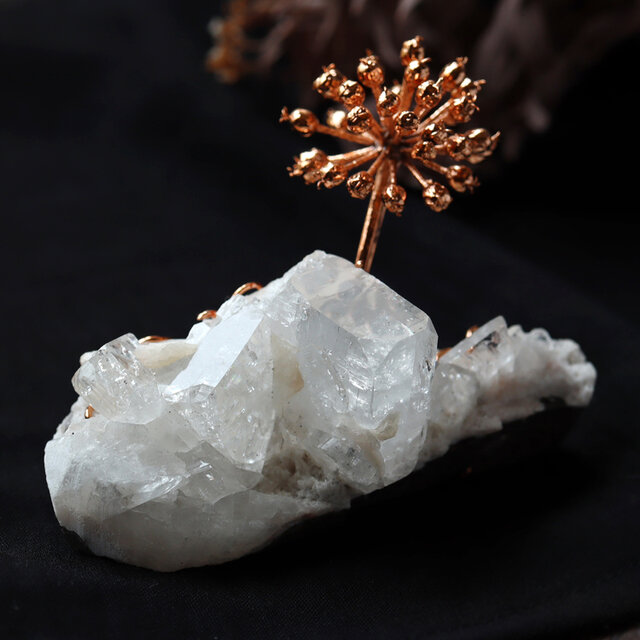 銅化した本物の植物と鉱物を使ったアートオブジェ。